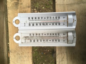 To try and assess how well the design works I took two thermometers and placed one outside and one inside.
