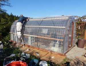 I would have to say this project was a worthwhile experiment. While the cost was literally double what the first hoop house cost, it still wasn’t that expensive given that many of the materials for the retrofit – like that of the original structure – were salvaged from other projects.
