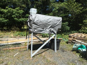 One design change: added screening material to the intake hopper to keep out flies!